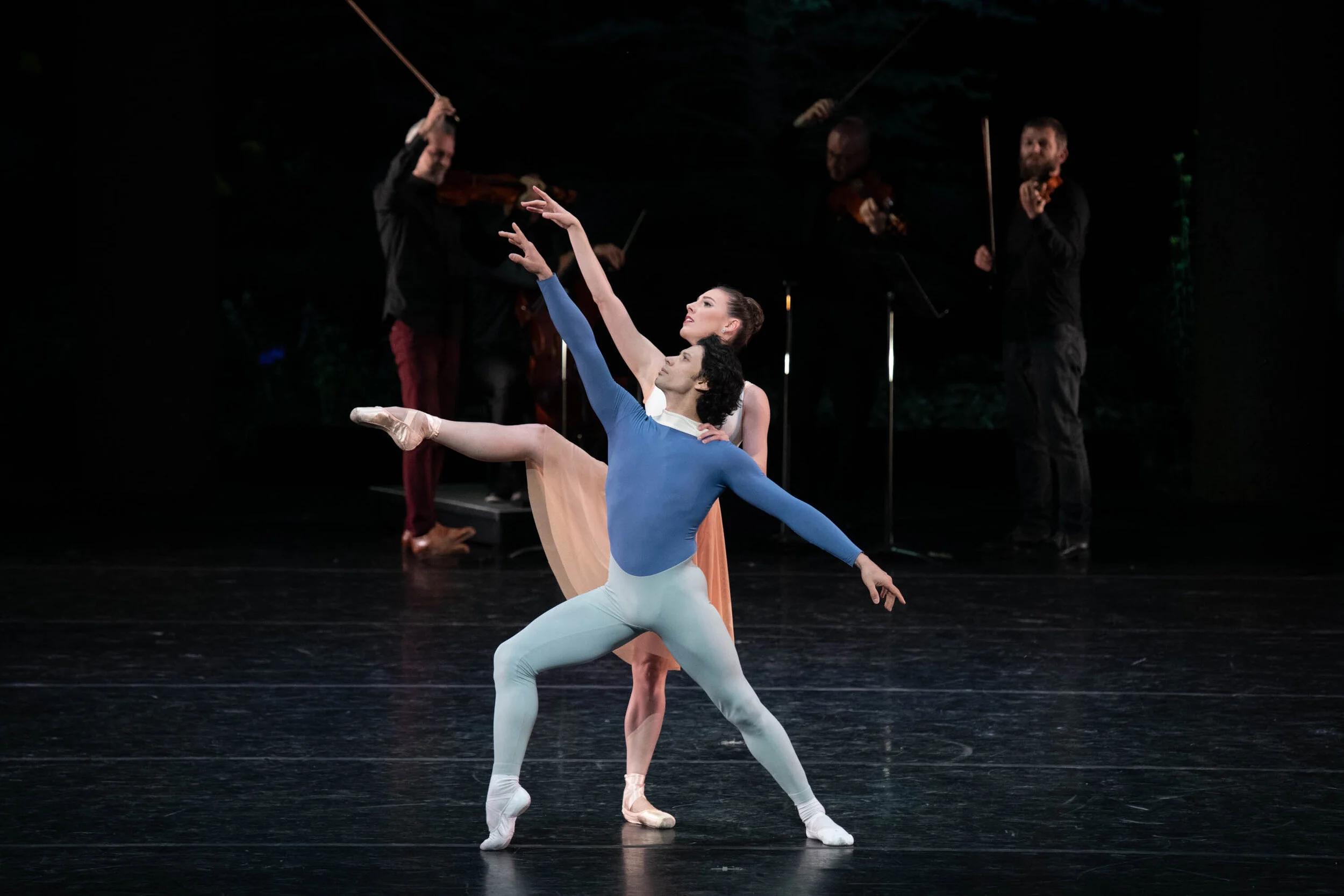 New York City Ballet's Tiler Peck and American Ballet Theatre's Herman Cornejo in "Bloom" by Justin Peck at the 2021 Vail Dance Festival. Photo by Christopher Duggan